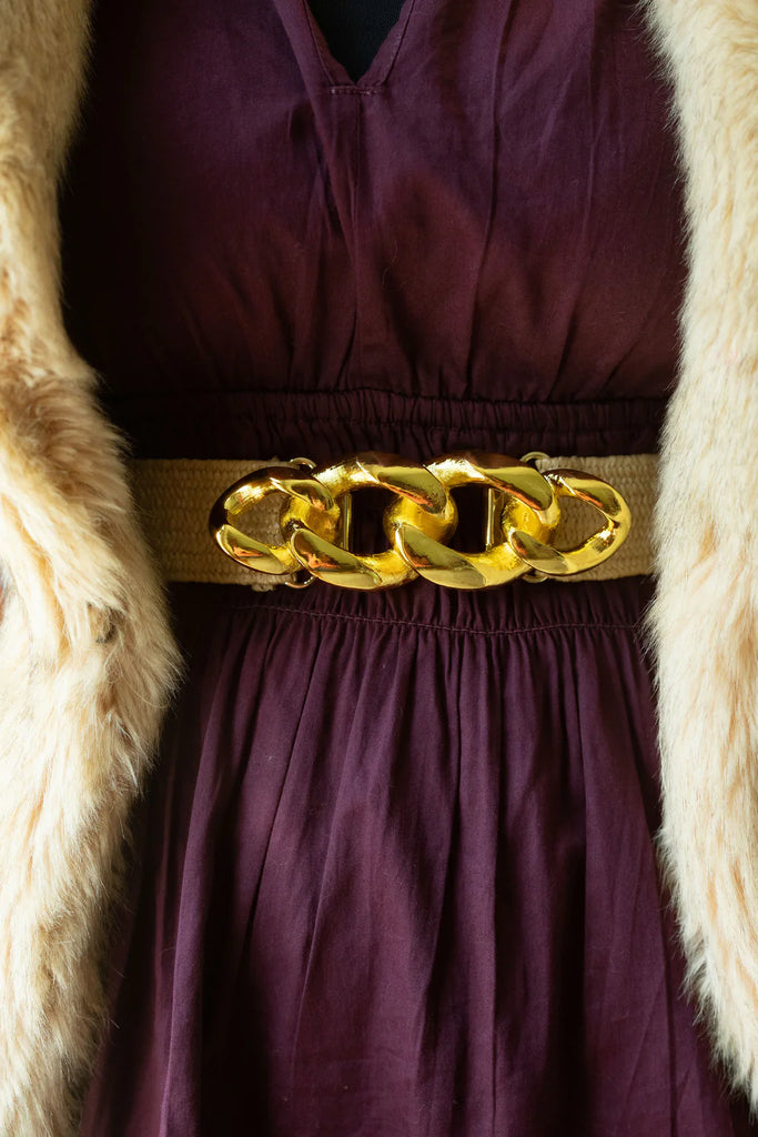 This buckle is an edgy classic - the gold chain link! It measures 5.25" x 2.5" and is interchangeable with all of our original stretch and stretch leather belt bands - BANDS ARE SOLD SEPARATELY.