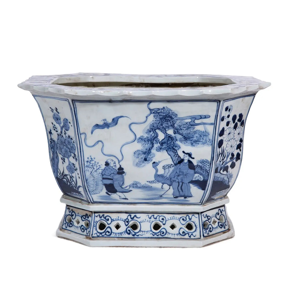 The Handmade Foot Bath Planter Immortal Figures is a unique decorative item made from highfire porcelain. Each piece is carefully handcrafted, hand painted, and designed to look like an antique. Perfect for adding a touch of elegance to your home, this planter is both artistic and functional. Ideal for anyone who loves unique, handmade decor. Size: 15 in W x 12 in D x 10 in H