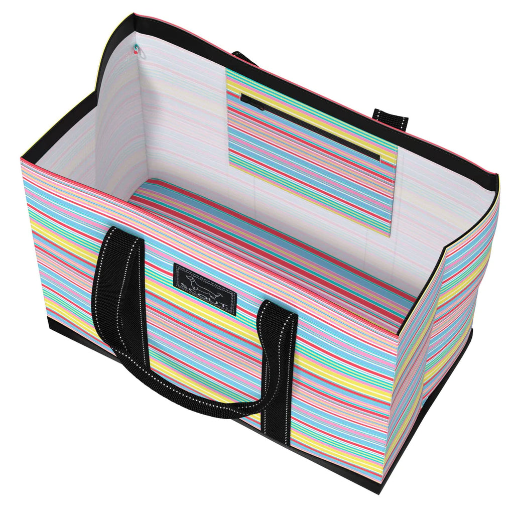 - Stable, burst-proof bottom allows tote bag to stand up on its own